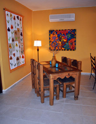 Location and Highlights: Located less than one half block off the beach in a small luxury complex with just six units and swimming pool. Less than a ten minute walk to centro Puerto Morelos. Spacious (1700 square foot) and well appointed, brand new condo with two large bedrooms and full kitchen. Tastefully decorated with local art.